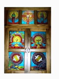 L'artista ha anche realizzato le vetrate della bussola dell'ingresso principale dell'Arcipretale di Tarzo.